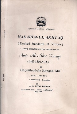 Makarim-ul-Akhlaq, Exalted Standards of Virtues, A Short Treatise on the Character of Amir Ali Sher Navayi (1441-1501 A.D.)