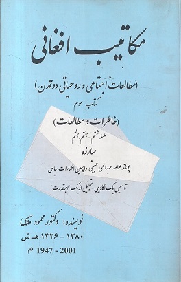 مکاتیب افغانی (در سه جلد) جلد اول مطالعات اجتماعی و روحیاتی دو تمدن، سلسله اول، دوم، و سوم، کتاب دوم سرآغاز هفت یا افسانه قدرت، سلسله چهارم و پنجم، کتاب سوم خاطرات و مطالعات سلسله ششم، هفتم و هشتم، دوره ۳ جلدی